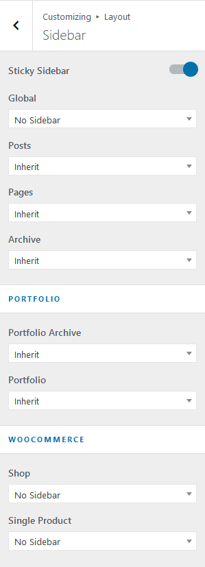Go to Customize > Layout > Sidebar Layout to access the sidebar layout options.