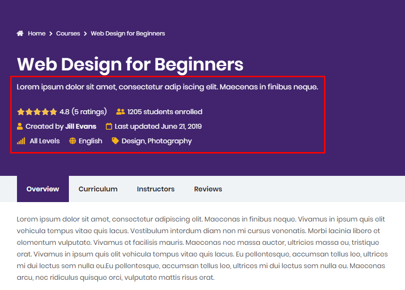 Talemy allows you to add custom meta data such as language, duration, course types etc. to Learndash courses/lessons/topics, please make sure Learndash Custom Meta plugin is activated, it can be installed on Appearance > Install plugins page.