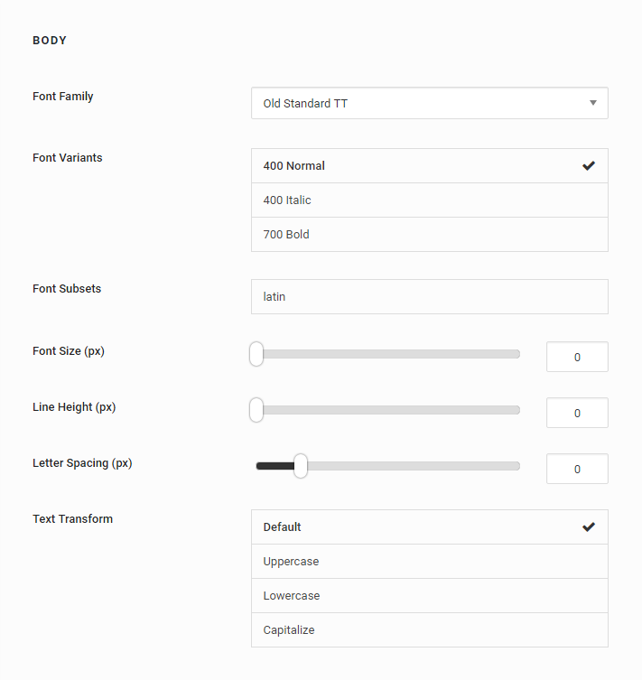 If you want more customization of typography, you could add custom font CSS under Vox > Theme Options > Custom CSS tab. Some HTML/CSS knowledge maybe required.